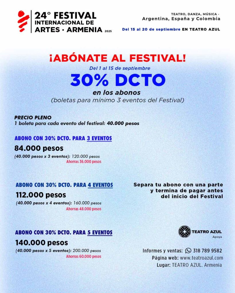 Precio de las boletas del 24° Festival Internacional de Artes • Armenia